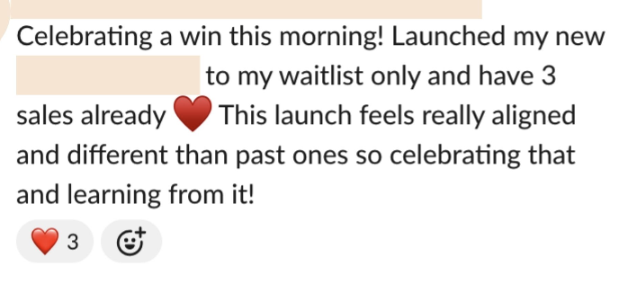 (I tried doing it on my own for months and ended up in deep overwhelm with an inbox flooded in freebies, and listening to 6 different people’s strategies that all seemed to give opposite advice- likely all the strategies would have worked but not altogether. And I was doing way more learning then vulnerable action)